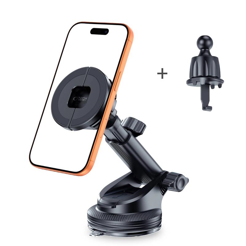 Support voiture 2 en 1 Tech-Protect N62 MagSafe et pince - Fixation au tableau de bord, au pare-brise et à la grille d'aération avec rotation à 360 degrés