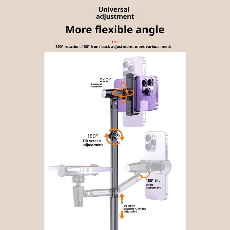 - Hauteur et angle réglables - La tige métallique extensible permet un positionnement polyvalent et un angle parfait pour les prises de vue aériennes, les diffusions en direct ou les enregistrements sur le bureau.