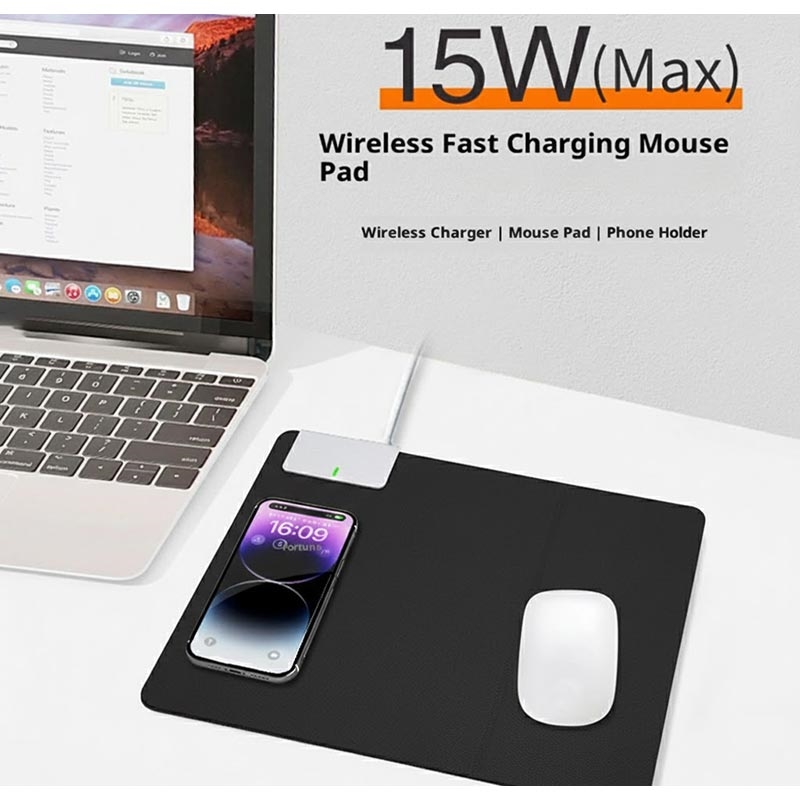 Ce tapis de souris offre confort, efficacité et fonctionnalité intelligente en un seul accessoire élégant. Il élimine le besoin de chargeurs et de supports séparés, ce qui permet de garder votre espace de travail propre tout en garantissant que votre téléphone reste alimenté et visible tout au long de la journée.