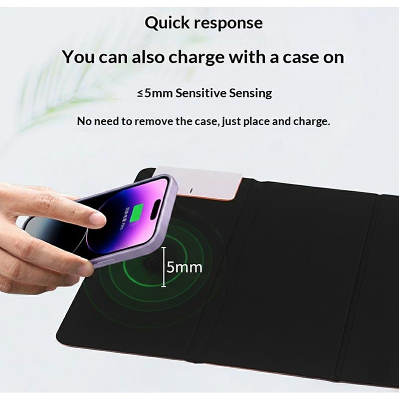 Tapis de souris / tapis de bureau pliable à chargement sans fil 15W - 262x210x5mm