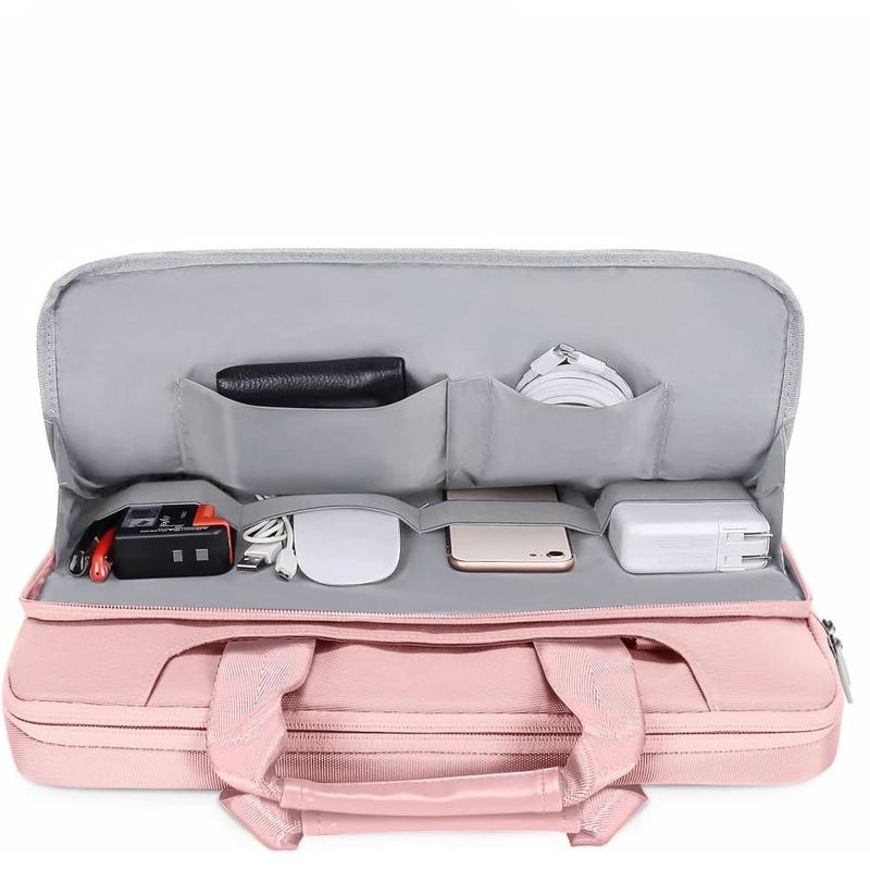 - Rangement spacieux et organisé : Il comprend un grand compartiment principal pour votre ordinateur portable, une poche frontale zippée pour les chargeurs, les câbles et les clés, ainsi que des séparateurs internes pour l'organisation des documents et autres éléments essentiels.