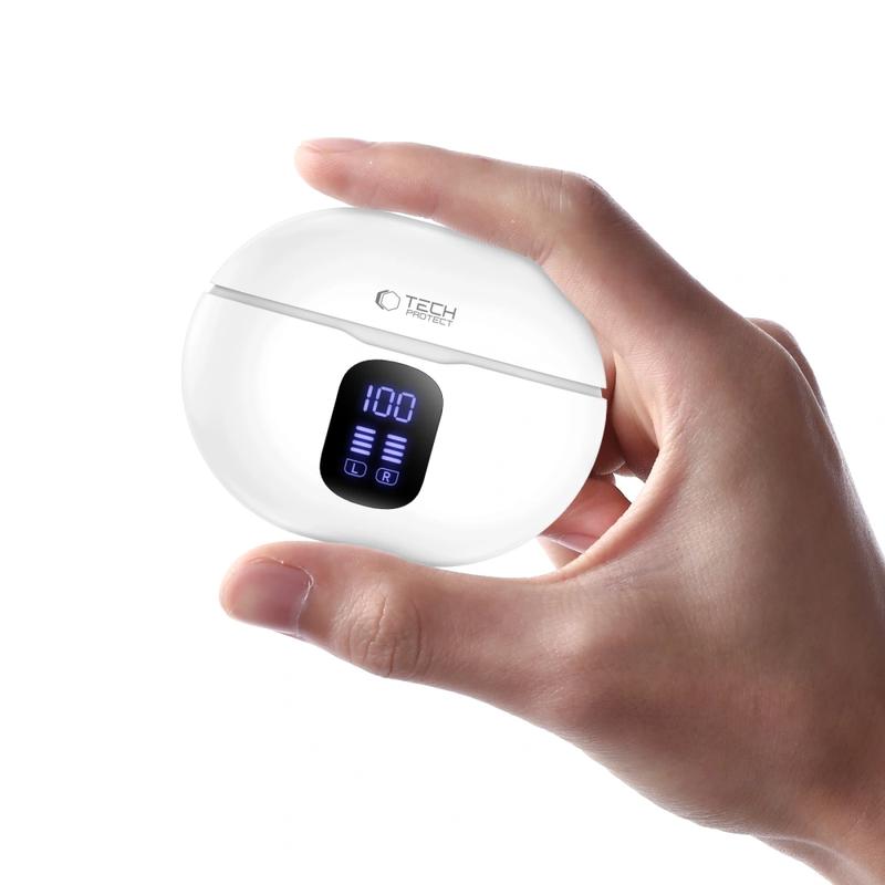 Tech-Protect UltraBoost TWS Pro G2 Écouteurs sans fil avec affichage LED - Blanc