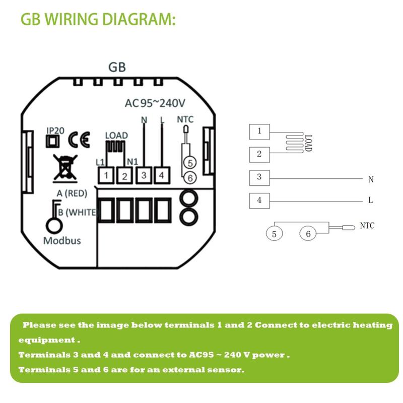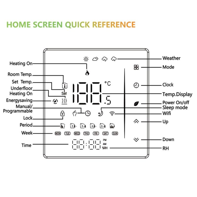 Fabriqué à partir d'un matériau PC+ABS ignifuge et durable, ce thermostat est conçu pour offrir des performances à long terme et un fonctionnement stable. La protection contre les coupures de courant permet de conserver vos réglages enregistrés, réduisant ainsi la nécessité de reconfigurer l'appareil après une interruption. Son format d'installation encastré s'adapte à un boîtier mural standard de 86 x 86 mm ou à un boîtier européen classique, ce qui le rend adapté à un large éventail d'intérieurs.