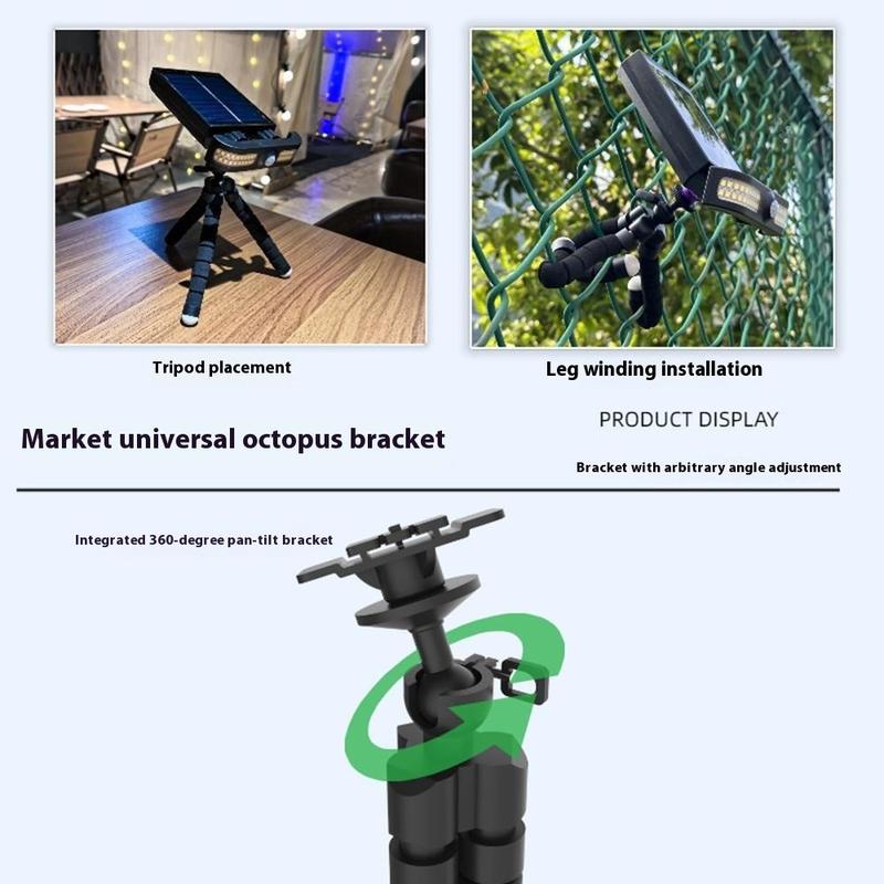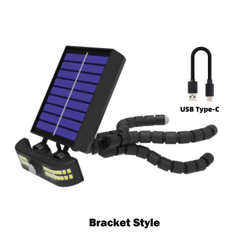 TJ-105 Lampe LED à énergie solaire avec trépied pieuvre - Lampe de jardin à 40 LED à détection de mouvement, chargement USB