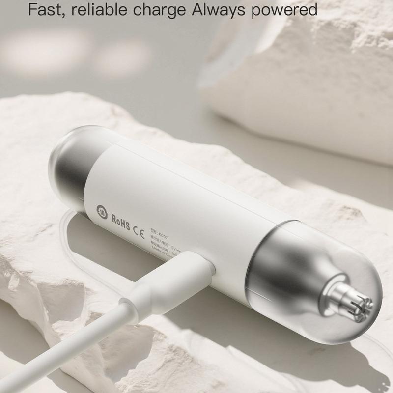 Alimentée par une batterie de 200 mAh, cette tondeuse se recharge en environ 1,5 heure via une connexion de type C. Le moteur intégré, doté d'un système de contrôle assisté par puce, est conçu pour offrir des performances efficaces et stables avec un faible niveau sonore, contribuant ainsi à rendre le processus de rasage plus confortable. Compacte, facile à recharger et simple d'entretien, cette tondeuse est un accessoire de soins personnels utile au quotidien.