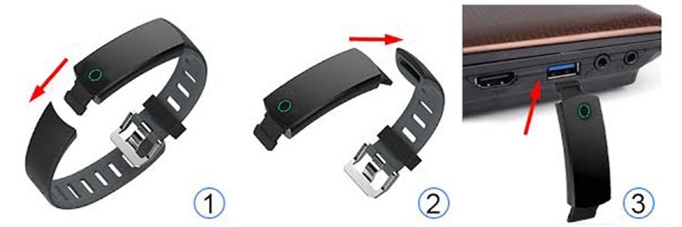 Vous n'avez pas besoin de câbles supplémentaires pour recharger votre tracker d'activité C20. Tout ce que vous avez à faire est d’enlever le bracelet et d’exposer le port USB. Il suffit de le brancher sur une prise secteur, un adaptateur mural, un ordinateur, un ordinateur portable ou un autre port de chargement USB.