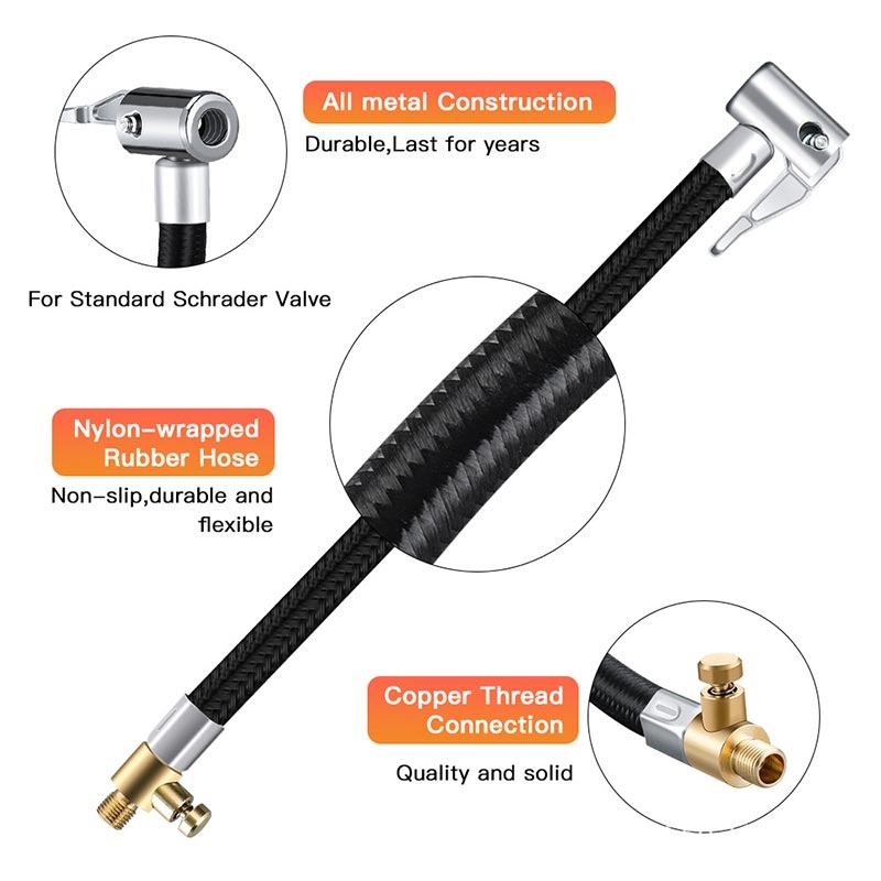 Il est solide, résistant aux fuites, facile à attacher et construit pour une utilisation durable - parfait pour tous ceux qui veulent une extension de pompe à air universelle et fiable pour plusieurs véhicules.