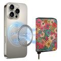 V16 Porte-cartes magnétique avec fermeture éclair - Compatible MagSafe - Fleurs colorées