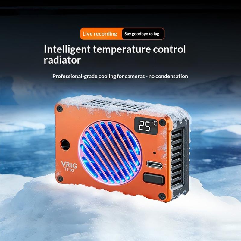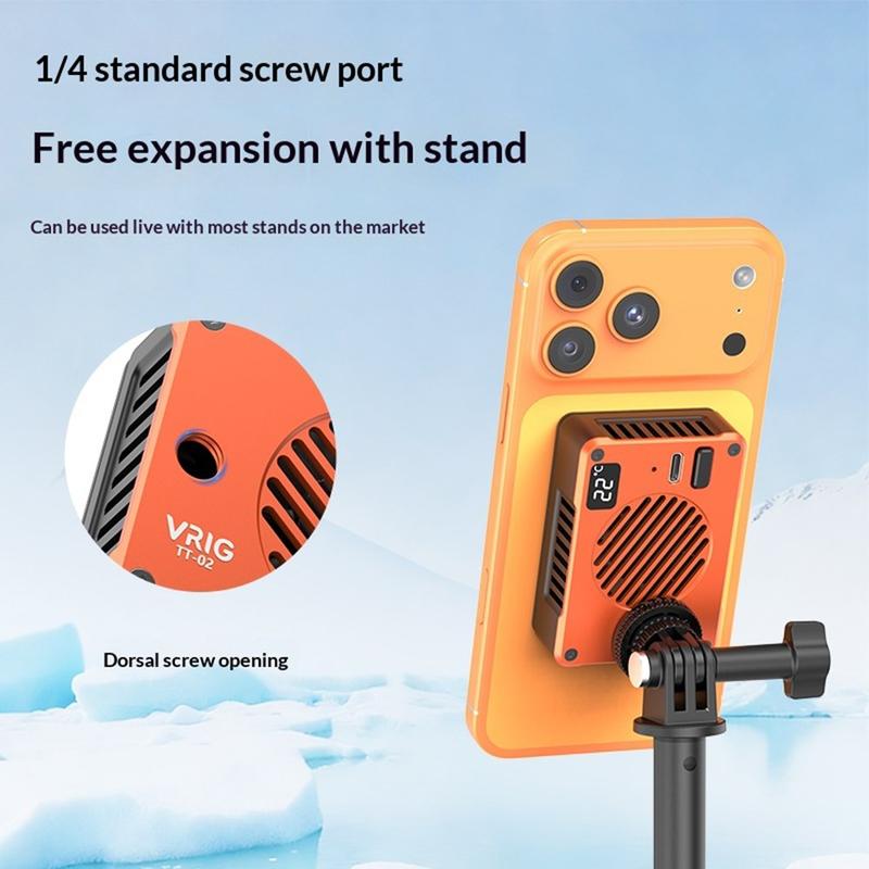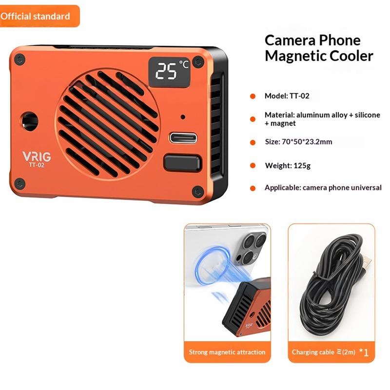 Gardez votre smartphone ou votre appareil photo au frais pendant les sessions intensives de prise de vue et d'enregistrement grâce au ventilateur de refroidissement magnétique VRIG TT-02. Conçu pour la vidéographie mobile, le streaming et les jeux vidéo, ce refroidisseur compact utilise la technologie de refroidissement par semi-conducteurs TEC, associée à un ventilateur à grande vitesse, pour réduire rapidement la température de l'appareil et maintenir des performances stables.