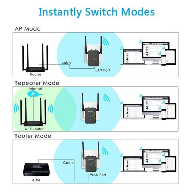 L'appareil prend en charge le mode routeur, le mode répéteur et le mode point d'accès (AP), ce qui lui permet de s'adapter à différents besoins en matière de réseau. En mode AP, il peut convertir une connexion LAN câblée en un réseau sans fil pour les ordinateurs portables, les tablettes et les smartphones.