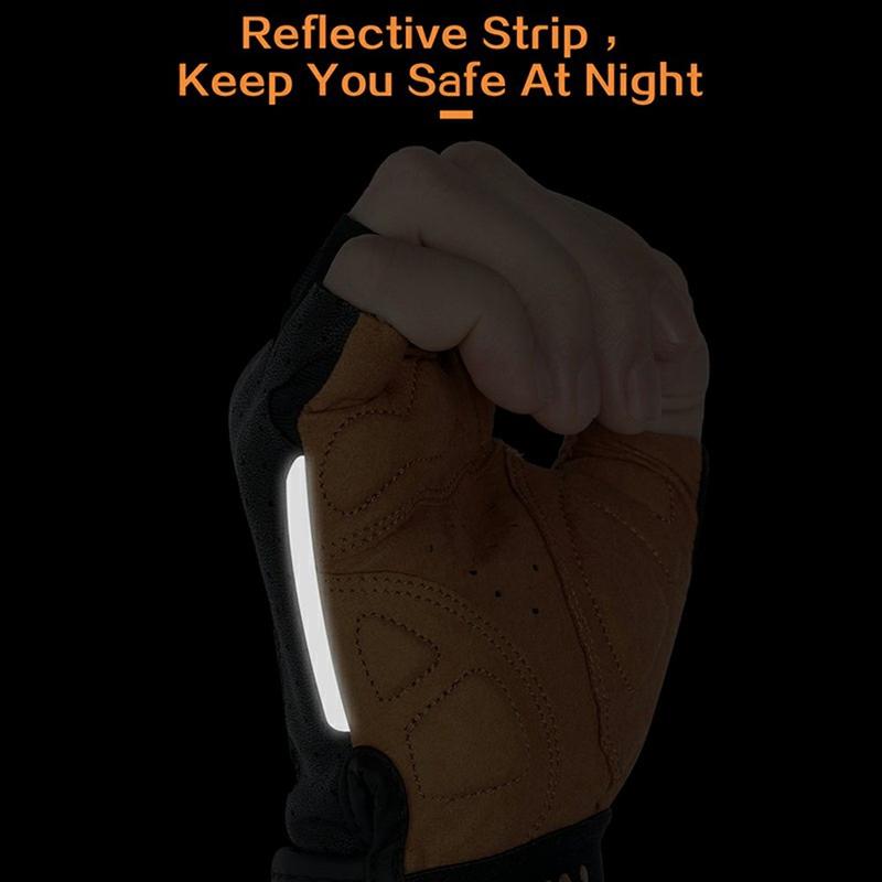 Conçus pour le bien-être et la sécurité des cyclistes, les gants sont dotés d'un tissu éponge qui évacue la transpiration pour un essuyage rapide du visage ou du front, ainsi que d'éléments réfléchissants qui augmentent la visibilité lors des randonnées nocturnes. La conception ergonomique à demi-doigts améliore le contrôle, l'adhérence et la ventilation, ce qui est idéal pour le cyclisme de longue distance, le VTT, le cyclisme sur route et les trajets quotidiens.