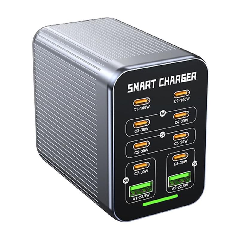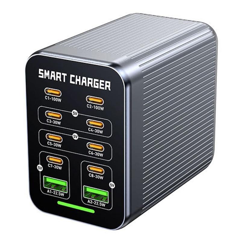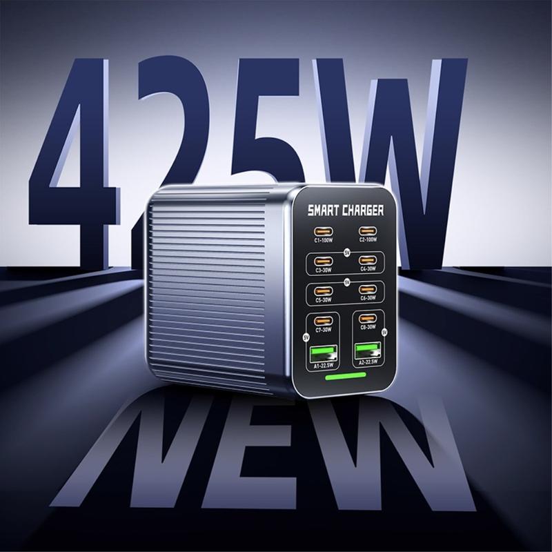 • WLX-G1 Station de recharge de bureau GaN 425W à 10 ports - Chargeur rapide multi-appareils avec PD/QC/PPS, refroidissement par ventilateur intelligent, 100-240 V