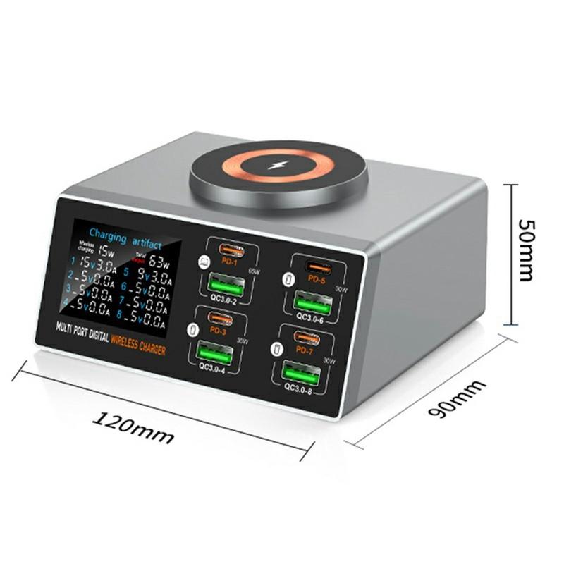 - Hub de charge 9-en-1 avec 8 ports filaires + 1 chargeur magnétique sans fil