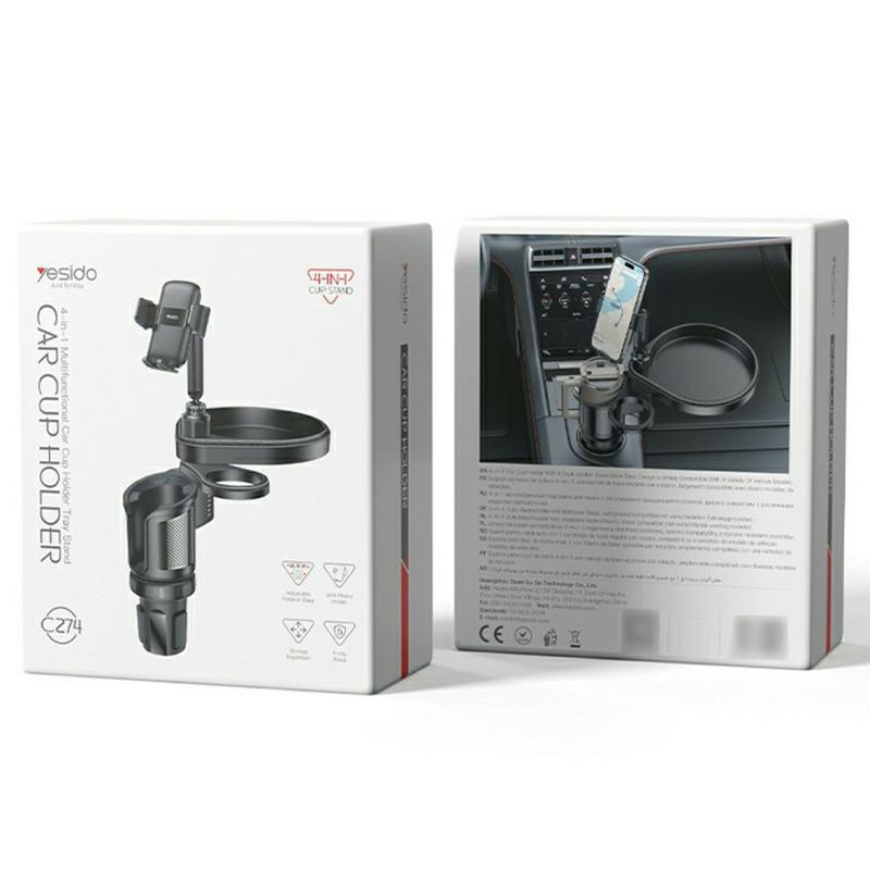 Yesido C274 Porte-gobelet de voiture multifonctionnel 4-en-1 - 4.7"-7.2" - Noir