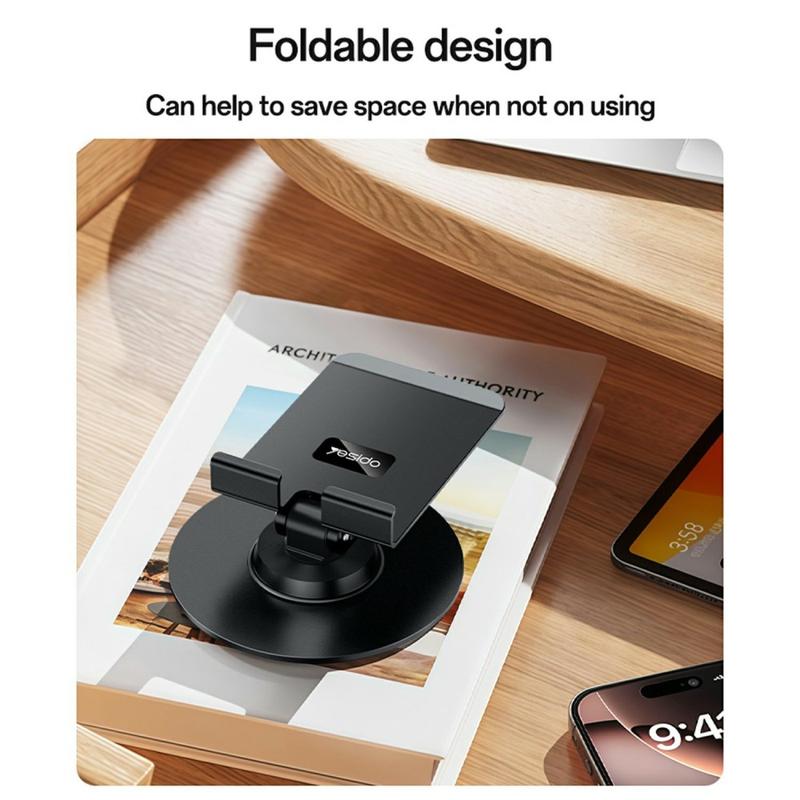 • Yesido C300 Support de bureau en alliage d'aluminium - Support ajustable pivotant à 360° pour téléphones et tablettes