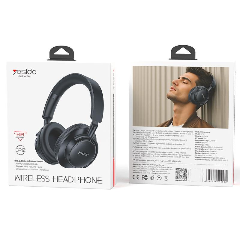 Yesido EP12 Casque supra-auriculaire Bluetooth - Confort zéro pression, double mode filaire/sans fil, prise en charge de l'assistant vocal