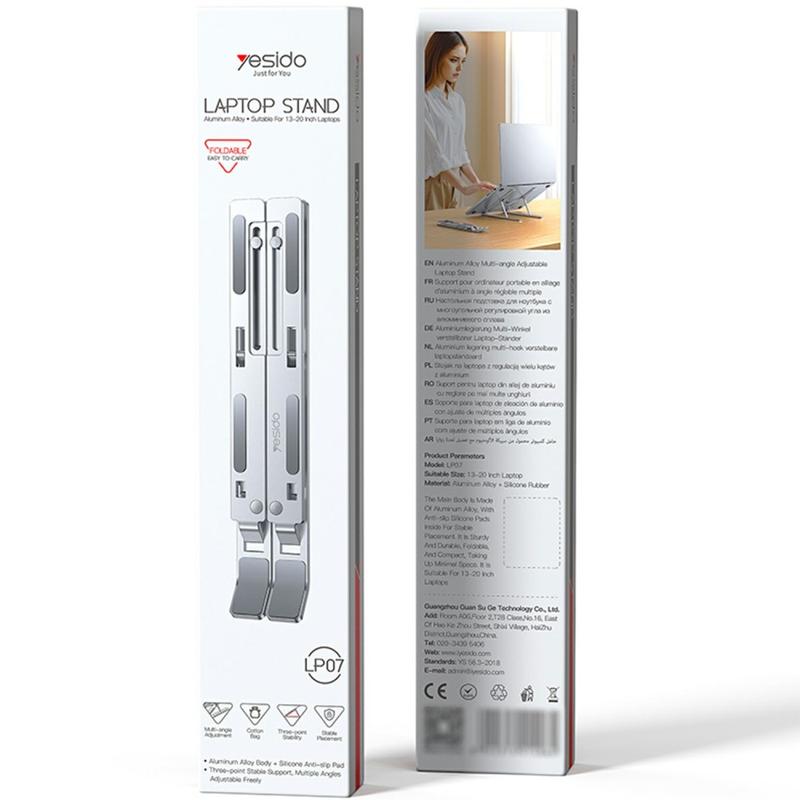 Yesido LP07 Support réglable pour ordinateur portable - Support réglable en hauteur en alliage d'aluminium pour ordinateurs portables de 13 à 20 pouces
