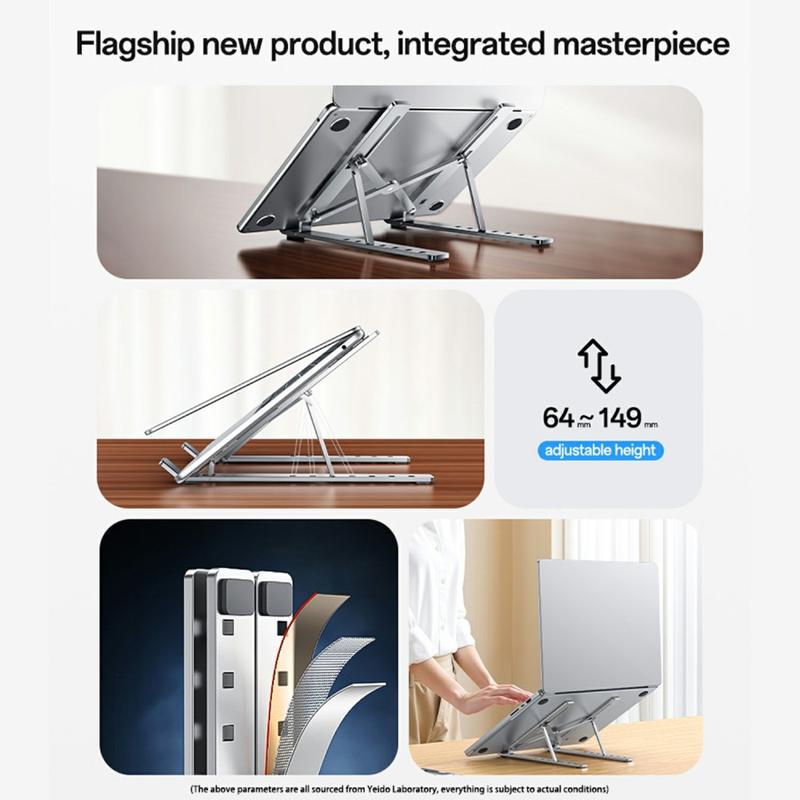 Améliorez votre espace de travail avec le support pour ordinateur portable YESIDO LP07, un support réglable pour ordinateur portable conçu pour la durabilité, le confort et le style. Fabriqué en alliage d'aluminium oxydé, il associe une finition métallique élégante à une résistance supérieure pour supporter des ordinateurs portables de 13 à 20 pouces. Grâce aux sept niveaux de réglage de la hauteur, vous pouvez trouver sans effort l'angle de vision parfait, ce qui améliore votre posture et réduit les tensions au niveau du cou et du dos pendant les longues séances de travail. Le rembourrage en silicone du support offre une stabilité antidérapante et protège votre ordinateur portable des rayures, tandis que sa construction de précision offre une esthétique haut de gamme qui surpasse les alternatives typiques en fer ou peintes. Parfait pour la maison, le bureau ou les voyages, le YESIDO LP07 allie fonctionnalité et design raffiné.