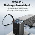 - Puissance de charge rapide de 67 W - Charge rapide via le câble Type-C rétractable intégré, garantissant un regain d'énergie rapide pour les smartphones, les tablettes et les autres appareils alimentés par USB.