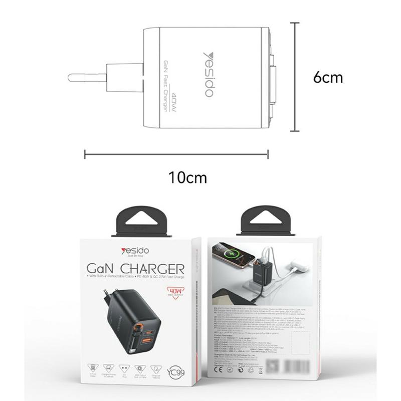 Yesido YC99 Chargeur rapide 40W avec câble USB-C rétractable - Noir