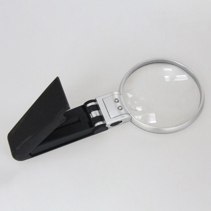 YJ7128F-90A Loupe à main pliable à LED avec deux lentilles - 2X et 5X